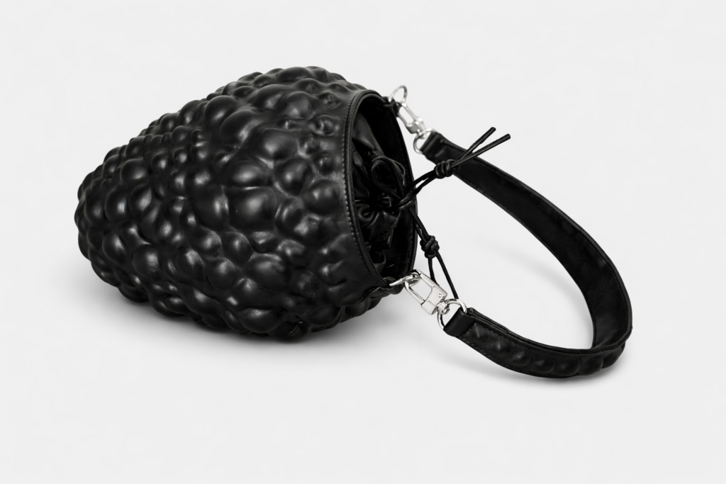 The Berry Bag explores this idea by translating the organic geometry of clustered berries into leather craftsmanship. Each raised form creates depth and rhythm across the surface, allowing the bag to function both as a practical accessory and a sculptural statement. As fashion moves toward more distinctive and thoughtful design, pieces that balance artistry and function are likely to shape the future of accessories.