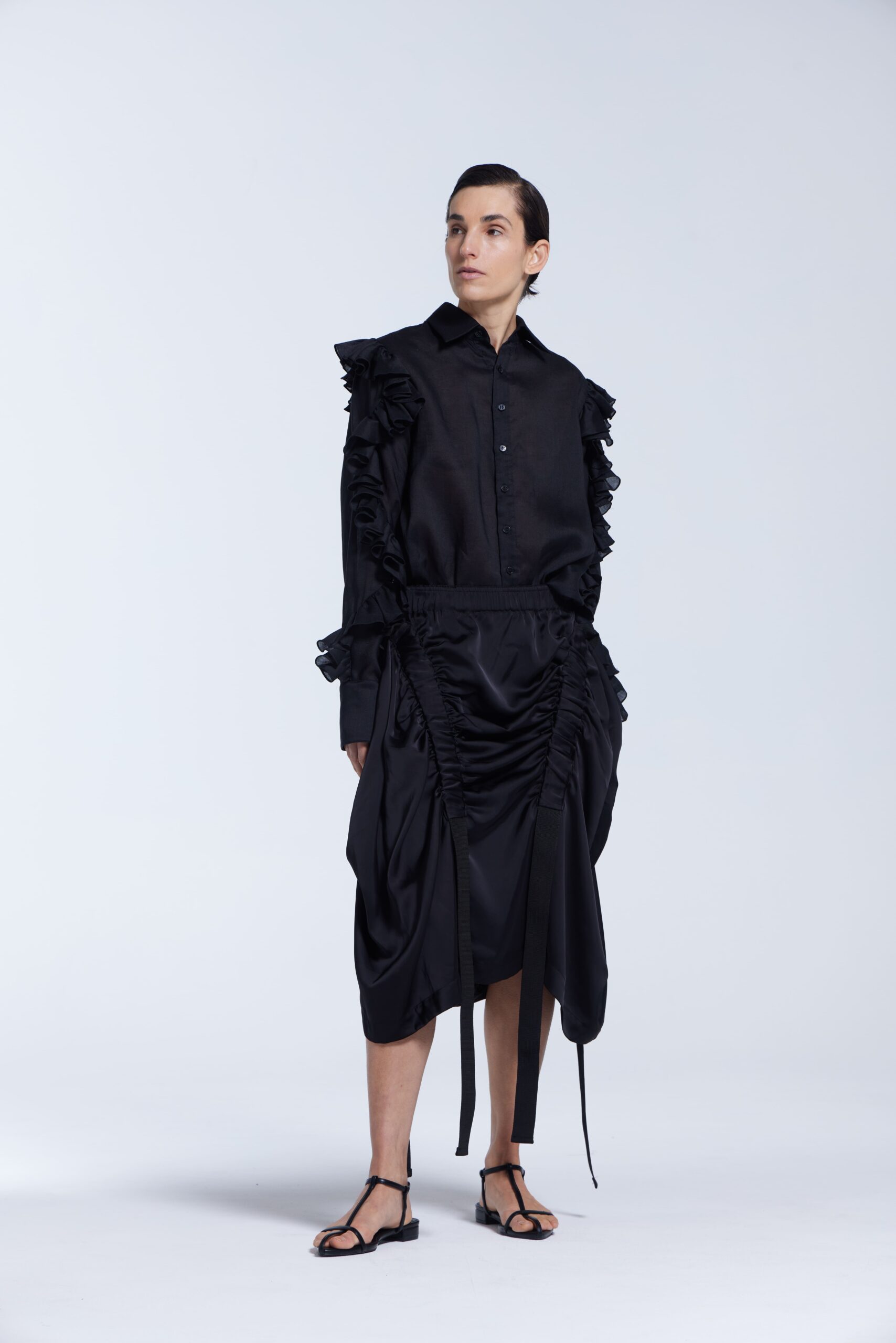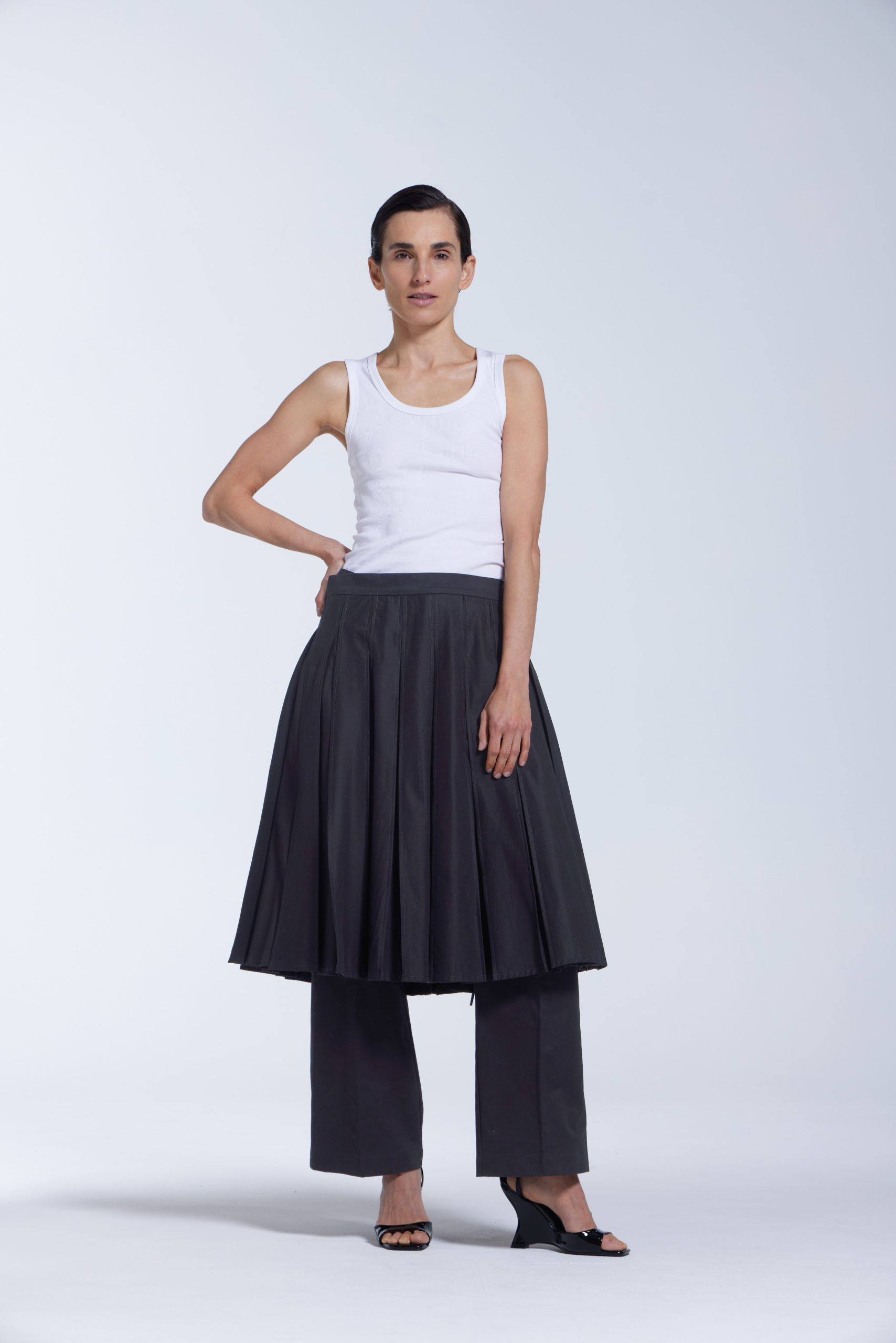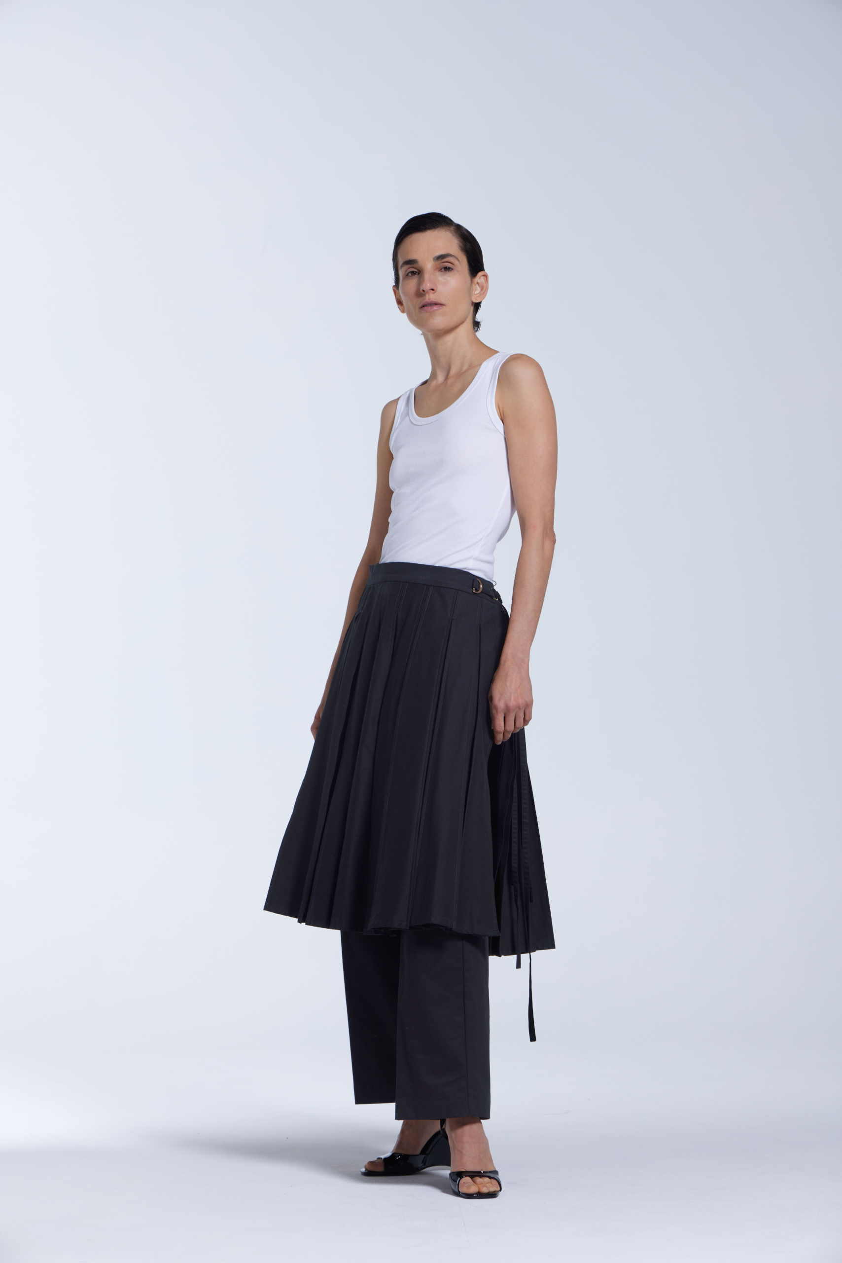 Sewn Pleat Cotton Wrap Skirt -Black Colour
