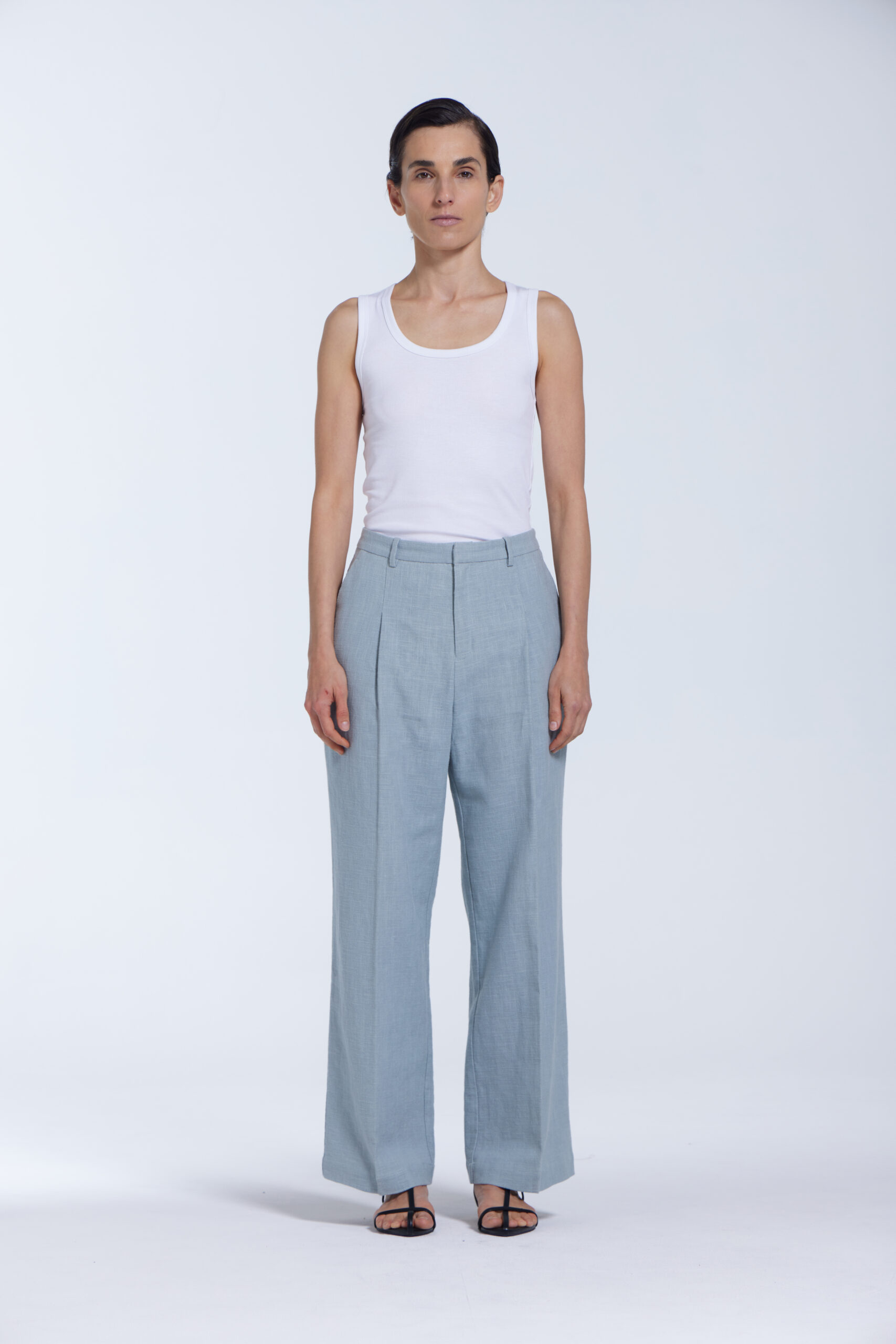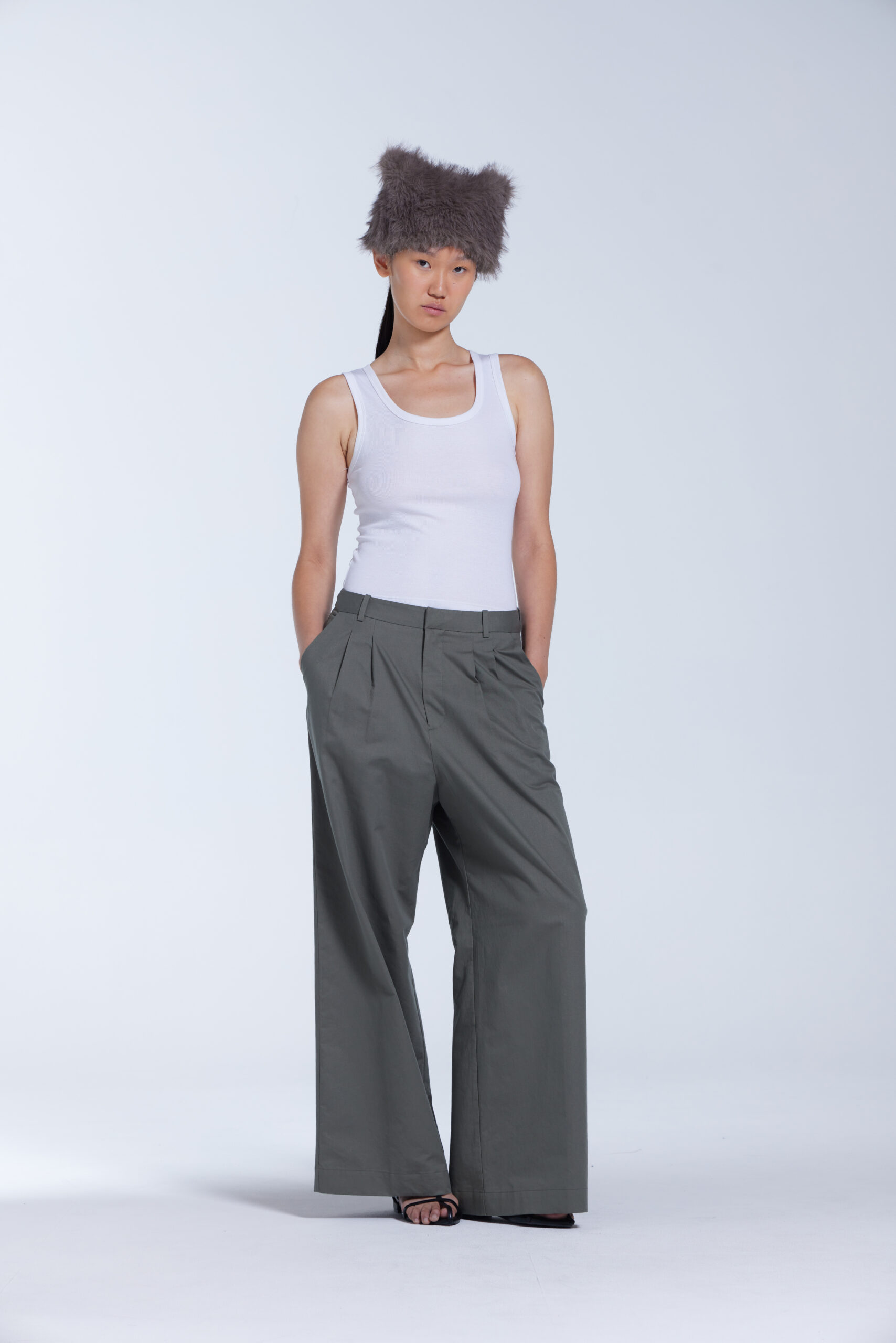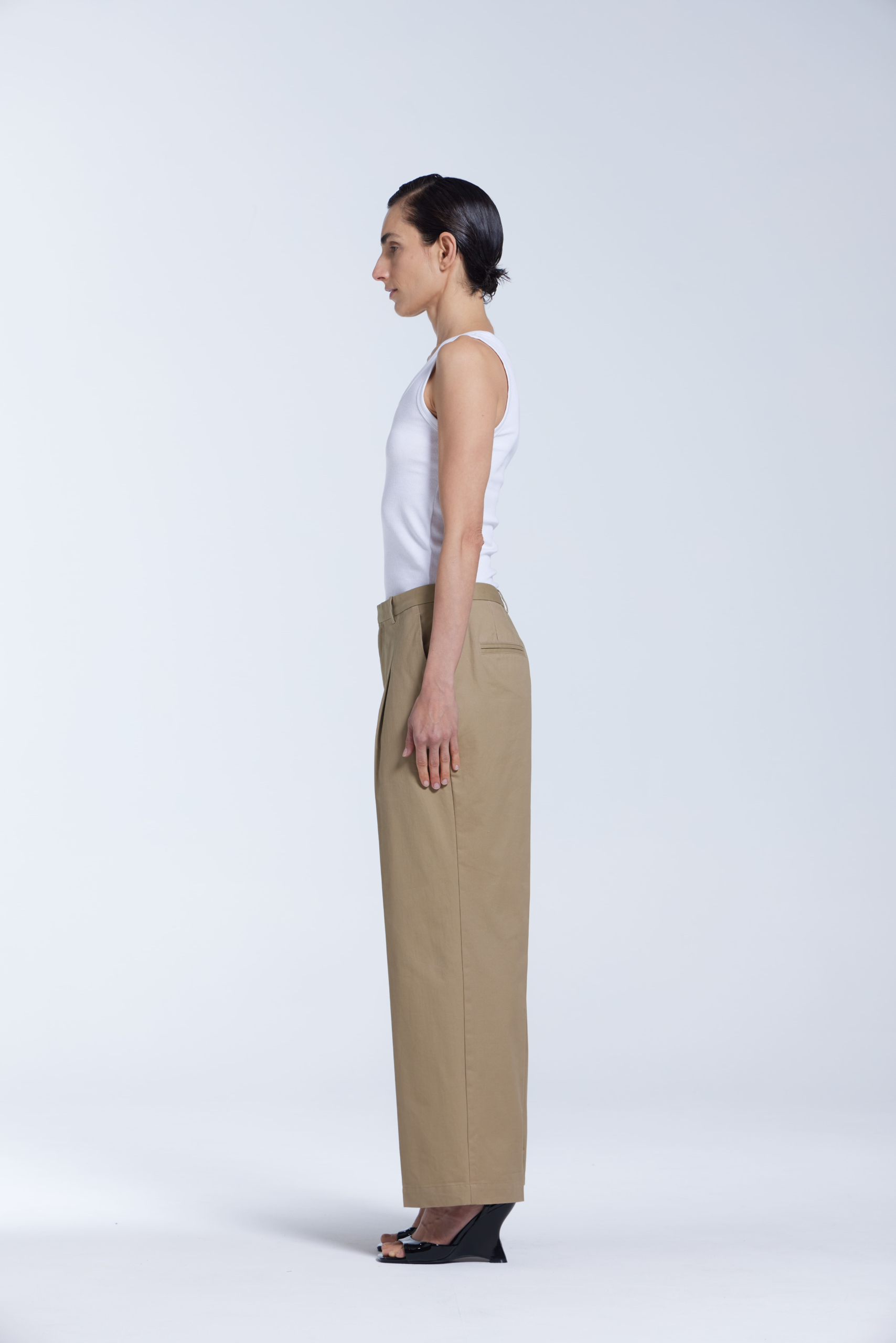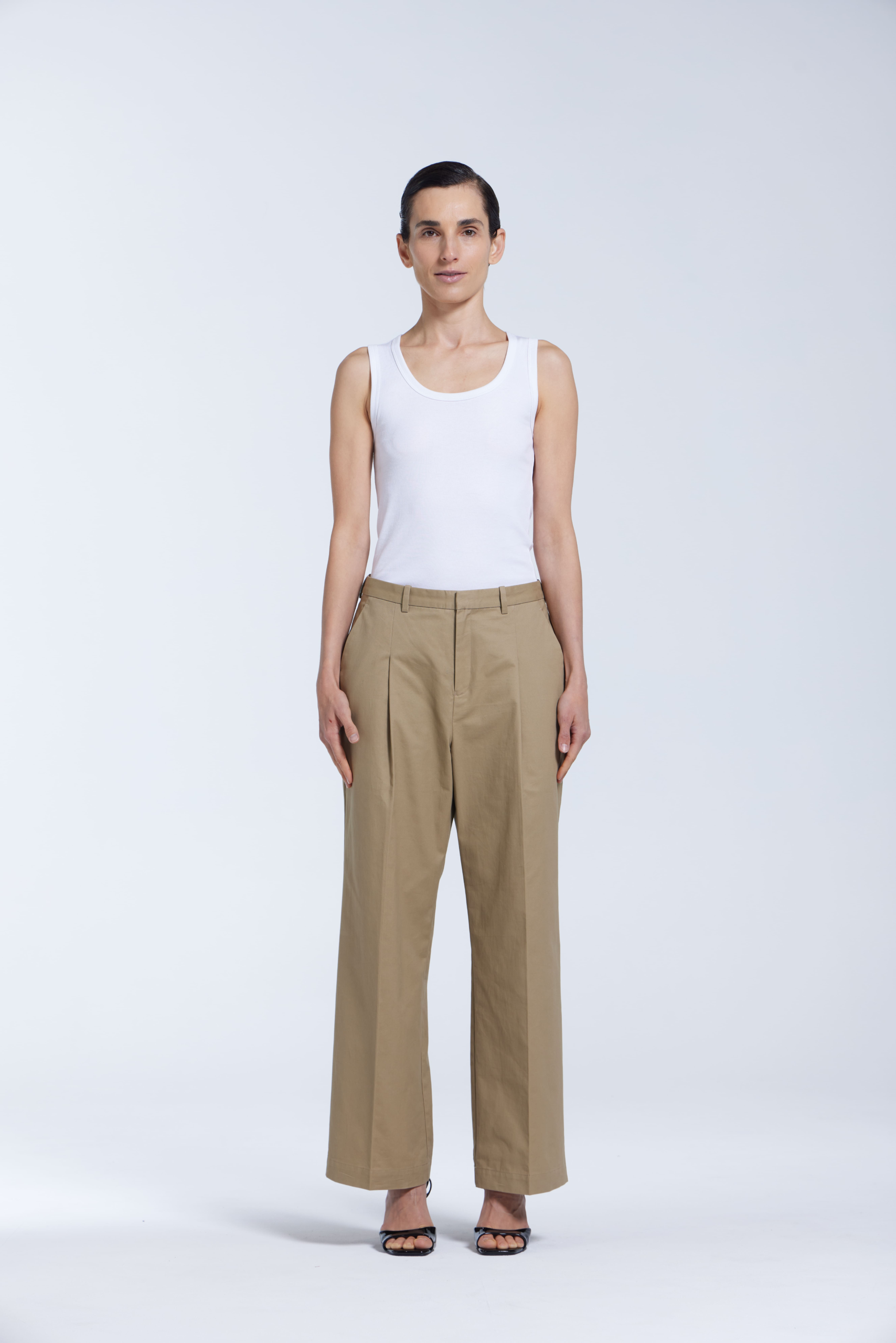 Pleated Straight-Leg Khaki Pants – Beige colour