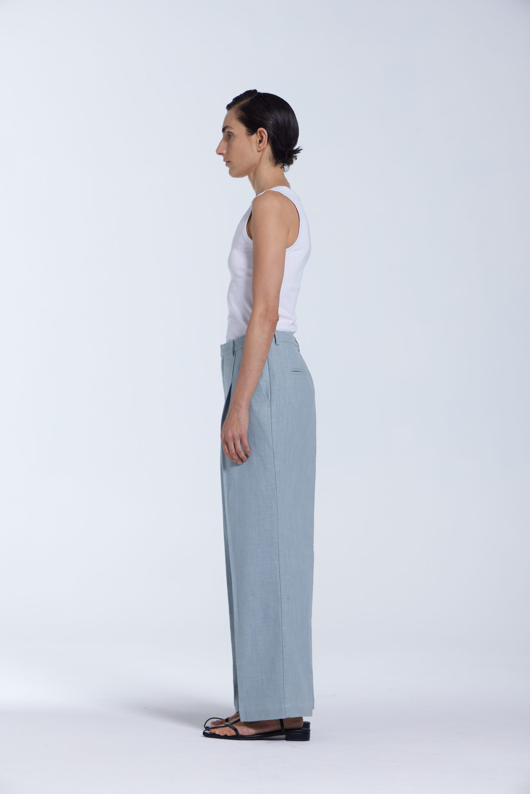 Washed Linen Straight-Leg Pants – Turquoise