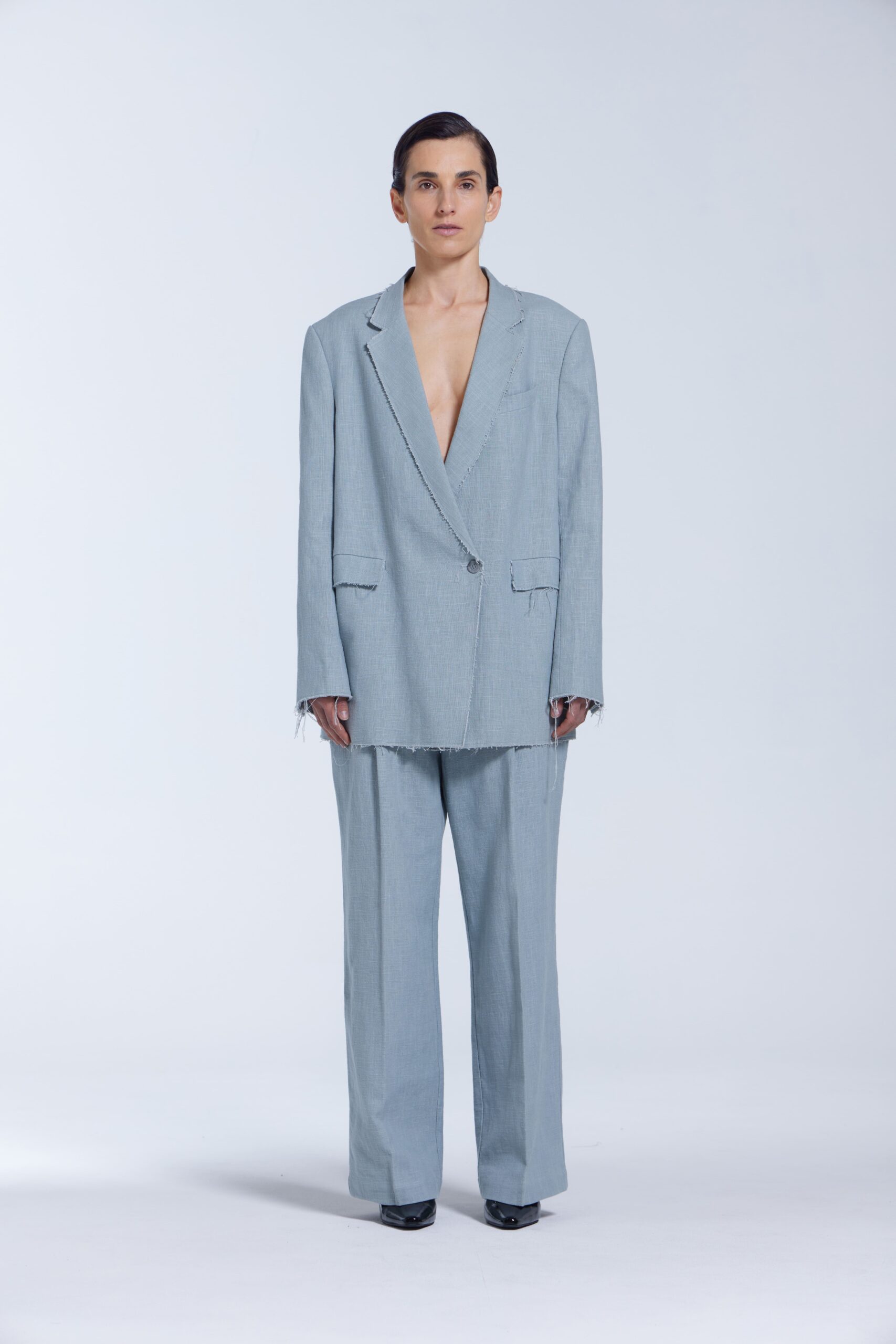 $800 AUDDistress Raw Edge Linen Blazer